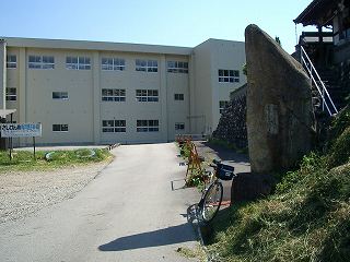 位山弘法堂の石碑と久々野小学校裏手 久々野小学校正門(14:30)