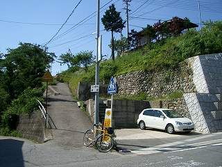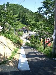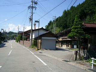 小学校から御母衣坂を下る 旧国道と街道の合流点(14:46)