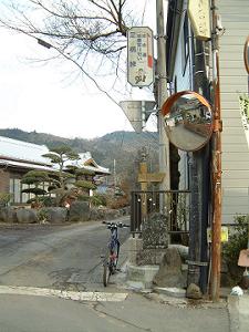 | 時間も押してきたので竹之下へ戻った。 下りは川沿いではなく、県道(古道)を通った。全部舗装であるが、竹之下一里塚などあって、歴史を感じさせる。 |