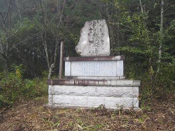 峠から下る。同じような1車線道を下っていく。道の勾配が緩くなって、人里近くなったところに「きもり跡記念碑」があった。麓まで下って国道118号線に合流した。