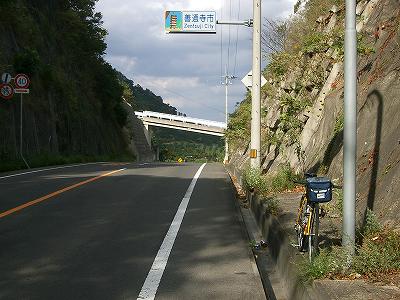 峠はけっこう急な切り通しにあった。しかし善通寺市へ下りていったら、甲子園などでお馴染みの尽誠学園の真ん前に出たのには驚いた。