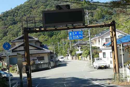 分岐点の手前にある看板では、峠道がいつの間にか県道409号線になっていた。そして行く手に四尾連湖(しびれこ)の看板が出てくるようになった。道もヘアピンカーブで高度を稼ぎだした。