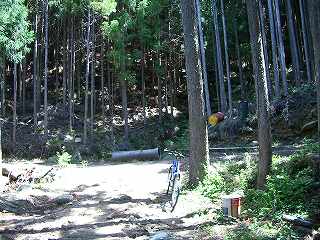 そこで先の分岐へ戻り、左へ行ってみた。路面はさらに酷くなり、落石が目立つようになった。この路面では乗ったり下りたりで行程がはかどらない。驚いたことにさっきのウサギがこちらに逃げてきていた。しかし今度は早々に山林へ逃がれた。いい選択である(^^;)。そこへまた分岐が現れた。今度は携帯GPSの御選託も私のカンピューターも右方向で一致した(^^ゞ