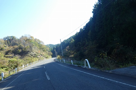 | 白賀川(しらかがわ)を渡る | 富東谷付近、センターラインがなくなる |