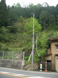 街道はしばらく国道に沿って進む。現在でこそ川沿いの道やトンネルになっているが、明治以前はもう少し高い所を通っていたそうである。法伝の滝付近には、その辺りの事情を記した案内板が立っている。そう思って上方を眺めてみると、20mほど上に怪しいガードレールがある。登ってみようと思ったら階段が藪状態だった(~_~)
