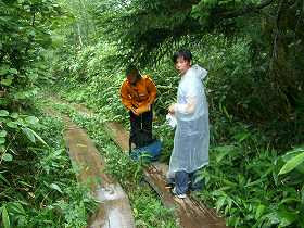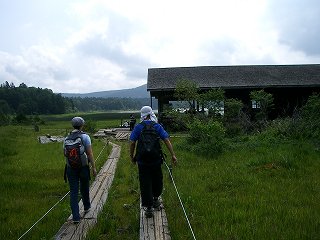 三平下の尾瀬沼休憩所まで達し、昼飯休憩。昼食中に雨が降り、嫌な予感がする。昼食後三平峠へは、あっという間に着き、拍子抜けする。油断しかけたところへ息子が「下りは体を温めるのに時間がかかるから峠では長く休まないですぐ出発した方がいい」と進言してきた。ウン、なかなか苦労してるな。