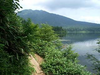 大休憩後、予定を変更し、尾瀬沼の南岸を歩くことにした。南岸の方が短いので少しでも楽をしたいためだ。しかし写真的にも南岸の方が順光になるし、沼越しの燧ヶ岳を撮ろうという計算もした(^^ゞ 南岸はほとんど山の斜面に道が作ってあった。