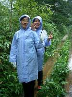 下りに入って間もなく。とうとう本格的な雷雨になった。皆思い思いの雨具を着用する。短時間にドバーッと降って終わりかと思っていたら道が川になるほど降った(ToT)
