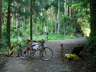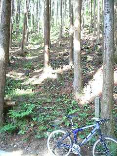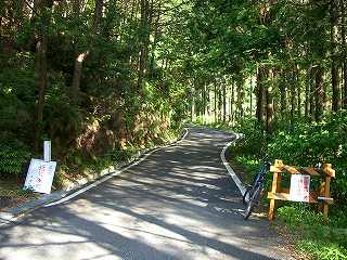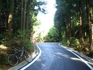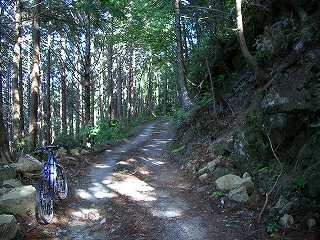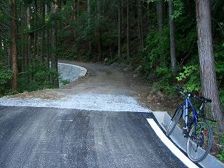 井戸町側へは下りというより高度を下げずに斜面をトラバースしていく感じである。少し行ったらダートになった。これが予告してあった路面不良箇所か?楽勝じゃないのv(^^)