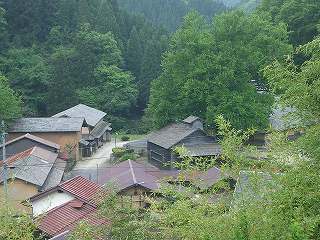 明日へ続く・ 菅谷の集落(正面の木の向こうに、たたら建築がある)