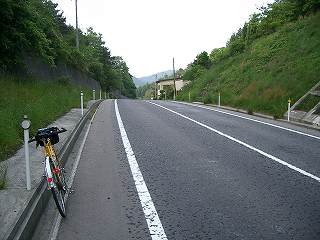 頂上付近の舗装面にゴム片が擦り込んであった。摩擦係数を増やす目的かと思った。ところが車の走行でそのゴム片が掻き出されて道に転がっている。あまりいい図ではないし、自転車で走ると転がっているゴム片は危険でしかない。こんなことは早く止めて貰いたい。