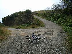 峠には萱峠牧場と看板が立っていた。牧場というくらいだから辺り一面草っぱらで、峠の鞍部どころか牛の糞が所かまわず転がっているし、ここから少し下った辺りに牛の群が放牧されていた。牛と糞に圧倒されて、それ以上入って行く気にはならなかった(ー_ー) | |