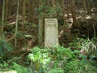 しかし、この峠、羽根側の方が山が深い。斜面をトラバースしながら下っていくのだが、時々登りがあったり、いまいちよくわからない。羽根と思しき集落の分岐付近で土地の人に聞いて奈垣(ながき)方向に下ると、麓付近に道路改修記念碑があった。そこには「広坂峠」の文字が書いてあった。