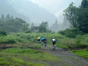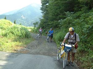 2度目は是非行ってみたいという乾さんたちランドナー一族を巻き込んで反対側の今庄から登ってみた。湯尾峠の近くから田倉川の谷を遡行する。