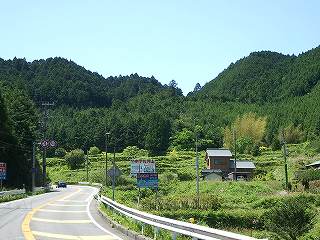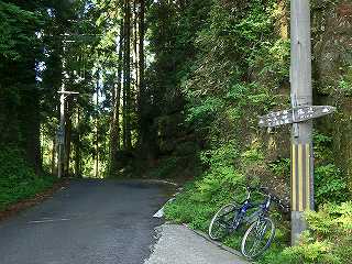 分岐を左へ行くと林道高更線、飛鳥で国道169号線に合流する道で、右が県道156号線、旧国道である。