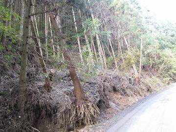 | 馬頭観音さん | 地滑りで落ちた木々 | |