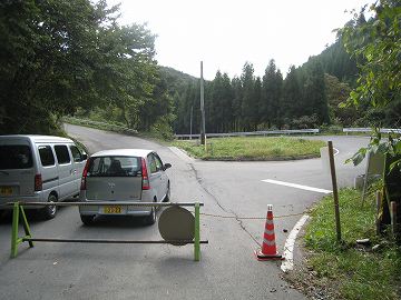 旧道へ入っていくと、通行止めになっていた。ちょうど新道の工事関係者が車を置きに来ていたので、先の状況を尋ねると、