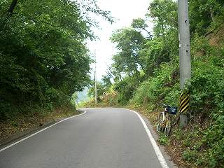 湯川を渡り、しばらくはゆるい登り坂だが、大きなヘアピンカーブを切る辺り、塩田変電所付近から道は1.5車線路に変わり、勾配も急になる。