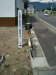 国道143号線との合流点に来ると、「仁古田飛行機製造地下工場跡地下壕入り口」なる立て札があった。どこかと思って探すと、村社・諏訪神社から西に行った所だった。今でも地下壕があるらしいが、奥の方だったようで、私は見つけられなかった(´ヘ`;)