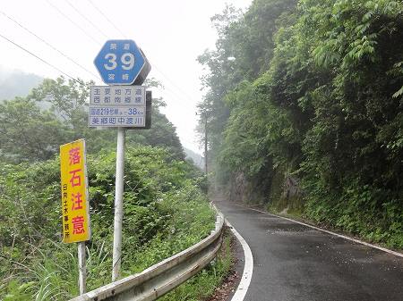 県道234号線の崖っ渕のような道を進む。山草橋の分岐で県道39号線と出会う。目指す槇鼻峠は渡川の源流部なので山草橋を渡る。