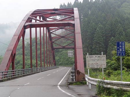 | 林道渡川尾八重線へ行く橋 | 県道(左)と分かれ、渡川沿いを遡る |