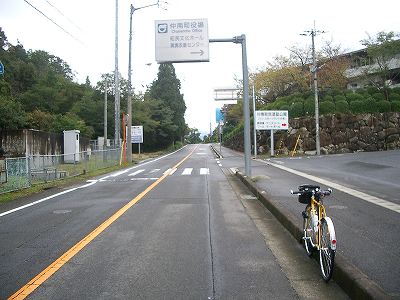 峠はすぐ。役場と中学校横の単なる頂上だった。 峠付近