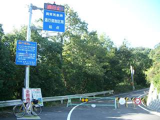 高松自動車道さぬき三木ICの横から登った。ところがすぐに通行止めの柵が現れた。通行止めの柵