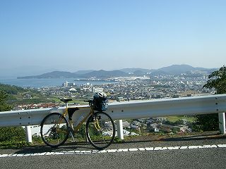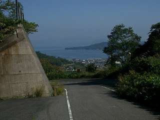 さぬき市側は峠道から海が見える。登り口にはやはり「通行止」の電光掲示があったし、三木側より警戒?は厳重だった。それでも自転車ならヒョイヒョイってもの。