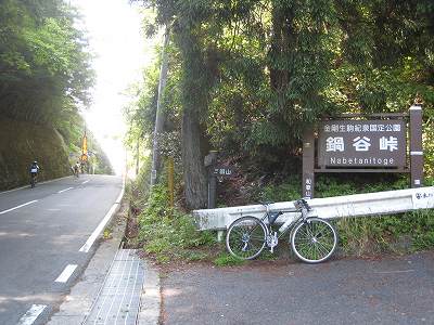 和歌山県かつらぎ町平と大坂府和泉市父鬼町の間にある国道480号線の峠である。 弐千峠達成記念サイクリングで行った。七越峠から下る。ずっと下りで鍋谷峠に到着。楽ちんポンである。 |
