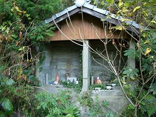峠横に廃道のような階段があって、登るとコンクリート造りの祠があった。大きさから察すると、それなりの仏さんがいたように思われるが、今はミニチュアのような仏さんがいるだけだ。