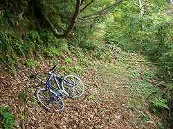 しかしこの山道、入り口以外は全然道標がない。地形的に尾根筋まで来たのにドンドン登っていく。そこへ分岐点が現れた。どちらへ進んだらいいか全然わからない。これ以上博打をやっても深みにはまる。こういうときは戻るに限る。幸い、下りは乗れそうだ。ヤバイ場所は覚えてある。こういうときのMTBは有り難い。少々の倒木は乗り越え、ぬかるみも勢いで下っていく。ヤバイ場所も一気に突破して、旧国道との分岐点まで生還できた。 しかし何でケツなんだ?ハチは熊の目を狙うのか黒い物に反応する。山道なので短パンを履いた上からツーリングニッカ(黒色)を重ねた上からやられたんだな。 |