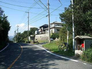 2車線で峠部分だけ狭くなって、お地蔵さんの祠とバス停があるのが印象的だ。
