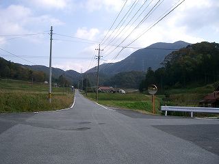 島根県邑南町矢上から日和へ入る県道112号線の峠である。 日和から登った。 日和から峠方面を見る(送電線鉄塔が峠)
