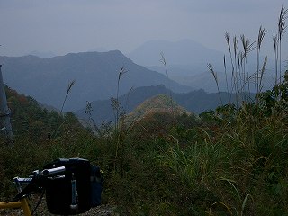 峠には送電鉄塔が建ち、洞門付近が峠になっているようだ。送電鉄塔付近から遠望が効く。はるか彼方に昨夜泊まった三瓶山が聳えていた。