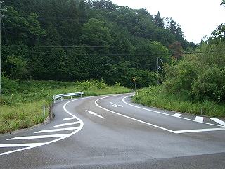 新道は大峠トンネルに入るが、旧道はトンネル手前から1車線道になる。