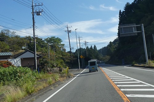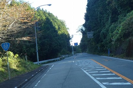 国道脇に写る『なんぶの湯』は富士川を渡った対岸にある温泉施設で、ここは何の関係もない材木関係の事務所らしい。峠道はセンターラインのある一般国道である。さすがに峠手前まで来ると勾配もきつくなる。