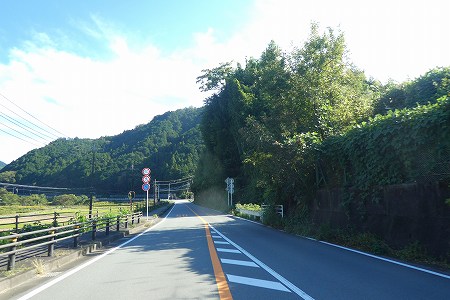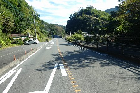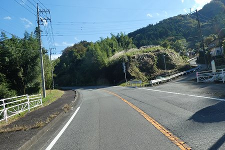 峠から下る。ちょっとしたパーキングもあって嬉しい。センターラインのある国道を下りていくと、すぐに富士川沿いの道になった。2.5万図を見ると国道と高速道は右岸側、身延線は左岸側にある。そして大和峠の場所は富士川が作った狭隘部を安全に通るためにできた峠道だったのだ。