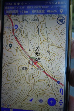 大和峠(おおわとうげ) 190m (2023.10.20) 地図 2.5万図