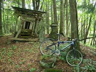 ・ | そこで四岳神社へ行ってみた。峠の案内板によると 『祠の右側にある立派な燈籠があり、燈籠の東側に「駒嶽山」、西側に「乗鞍山」、南側に「御嶽山」、北側に「白山」と刻まれ、末川村と黒川村の「講中安全」とも刻まれ、御岳、乗鞍、駒ヶ嶽、白山を祭る四岳神社は山岳信仰を具現したものとして注目される。 昭和56年 開田村教育委員会』 と書いてあった。 しかし行ってみて驚いた。祠は壊れて傾き、燈籠も形がわからないほど破損している。数年前、折橋にある木曽福島スキー場に行ったとき、強風と寒さに参った覚えがある。このままではこの祠と燈籠も近い将来、倒壊の憂き目は免れないだろう。案内板を建てた開田村教育委員会よ、自分たちで文化財と唱うならこの現状を何とかしろよな。 |
