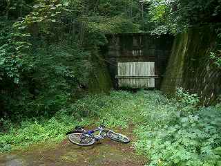 ・ | 車道から下の旧道探索をあきらめて折橋トンネルまで行ってみた。 あいかわらず厳重に封印されたトンネルがあった。そしてトンネルの前を通り過ぎた車道はそこからダートになっていた。私が6年前に騙されたのはこのダートを見たからだろう。 |