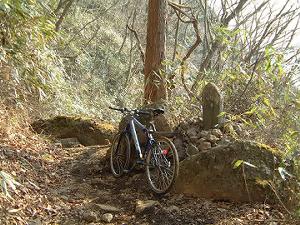 峠から下り出す(9:30)。こちら側は石がゴロゴロしてるし、道の氷が溶けて歩きにくい。中腹にもお地蔵さんがいて、なかなか歴史のある道のようである。