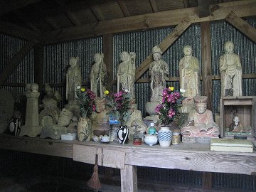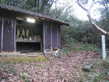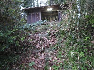 峠から斜めに道を上がると・・・賽の神の祠があった。祠といっても神仏が10体以上も納められた堂々たる収納庫である。収納規模はお堂といってもおかしくないほどである。こんな寂しい場所で蛍光灯が灯されているのはなかなか宗教的である。ここは賽の神を祀る所、すなわち賽ヶ峠=才ヶ峠であったのだ。