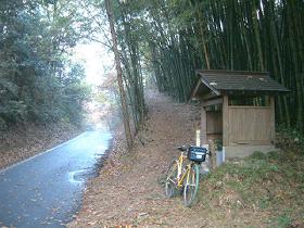 鴨方町の六条院東と西を結ぶ峠である。 県道64号矢掛寄島線から東へ入る。1車線の細い道である。瀬戸内らしくため池が何段も作られている。離合用に道幅が拡がった所の両脇に灯籠が2つ置いてあった。間隔があまりに間延びしてるので不思議だった。