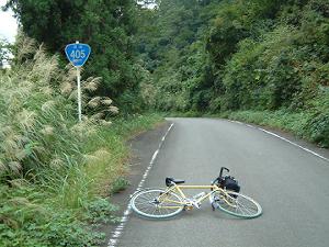 国道405号線の峠である。 土地の利用度が低いせいか峠道のまわりは小山のようなすすきの群落と杉の大木が交互に支配するエリアとなっていて一種荒涼とした世界であった。