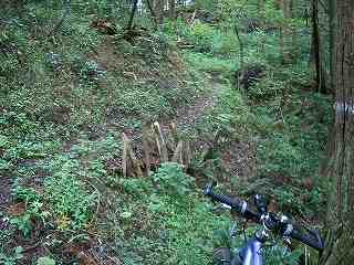 峠を辞して、与板側へ降りる。こちらは階段が付けられて、せっかくの興が醒める。さらに途中から道が林道状になったりして、MTB的には面白いが、歴史の散歩道としては×だ。 | |