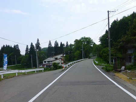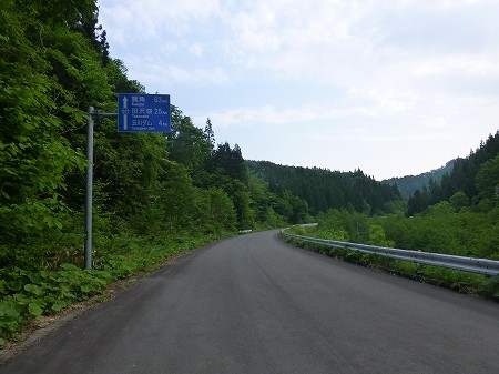 県道に入ると、すぐ桧木内川を渡る。橋の手前に「田沢林道」の看板がかかっているが、よくわからない。集落の外れに坂があった。登り切ったところに上桧木内保育園があった。道が険しくなるかと思いきや、平らになってしばらく進んだ。