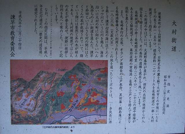 峠から大村側へ下りていくと、石畳があった。ドンドン下り、山道を抜けると、大村湾を見渡せる所へ出る。