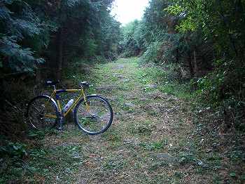 ダブルトラック程度の山道を押し歩きする。さほどの急坂ではなく、所々乗れるところもあるくらいだ。