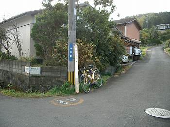 バスの転回場の所に旧長崎街道の道標がある。その先、墓地や水道施設の横を通って山道に入る。 バスの転回場(7:40)