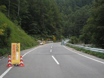 | 全面通行止の標識 | 路肩崩落 |